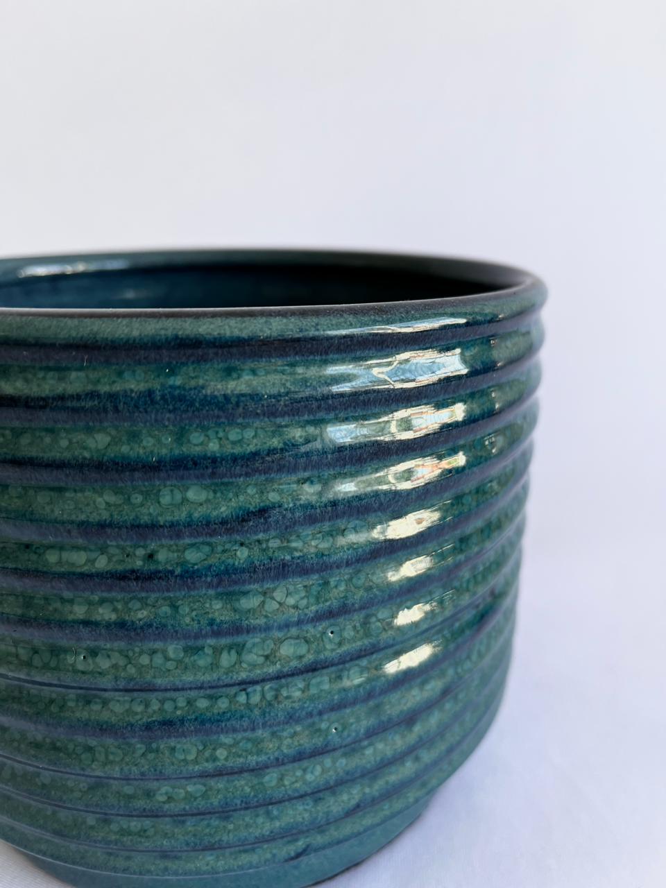 Cachepô de Cerâmica Esmaltada Canelado Acqua. Compatível com vaso padrão pote 15
