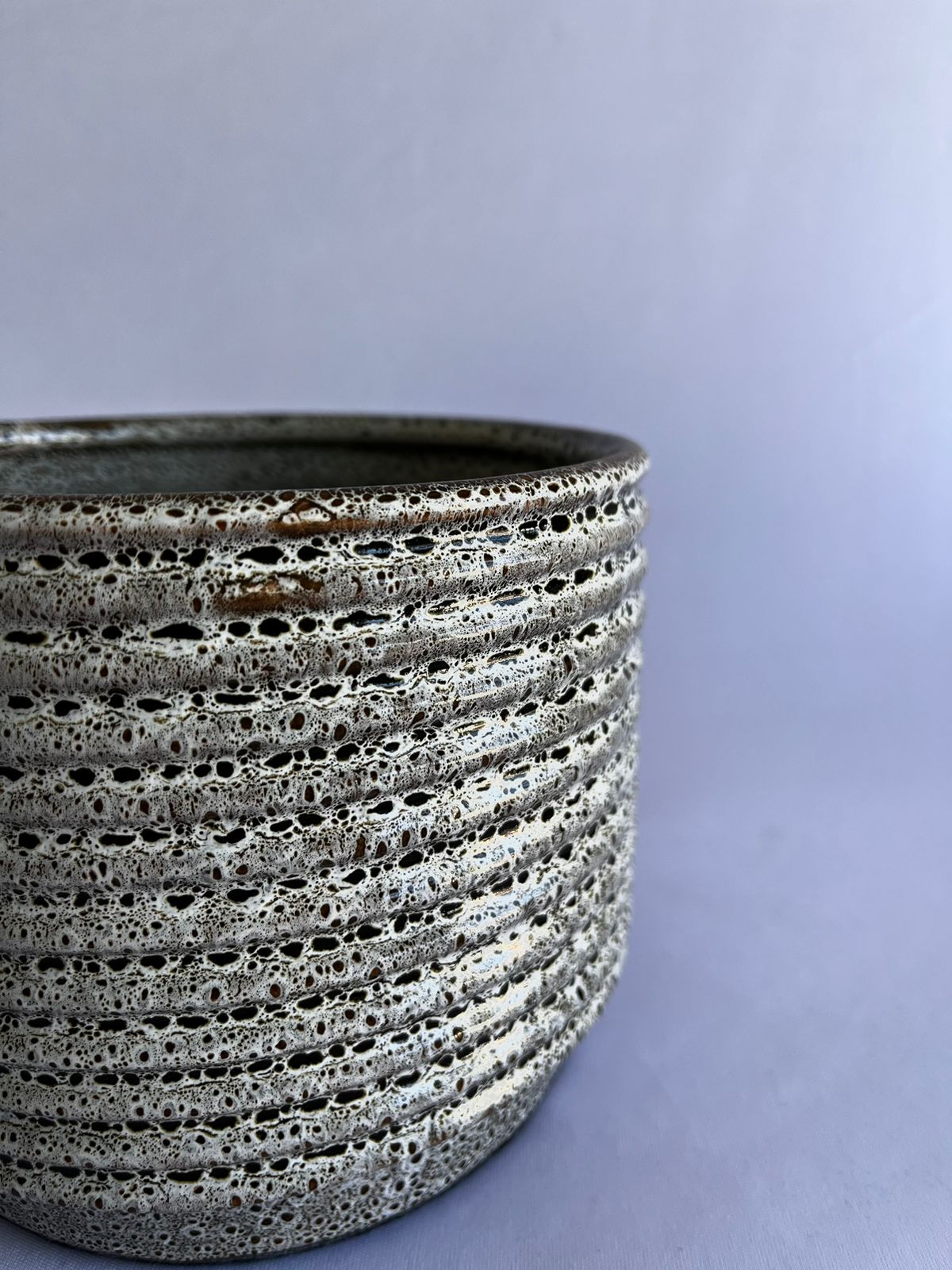 Cachepô de Cerâmica Esmaltada Canelado Quail. Compatível com vaso padrão pote 15