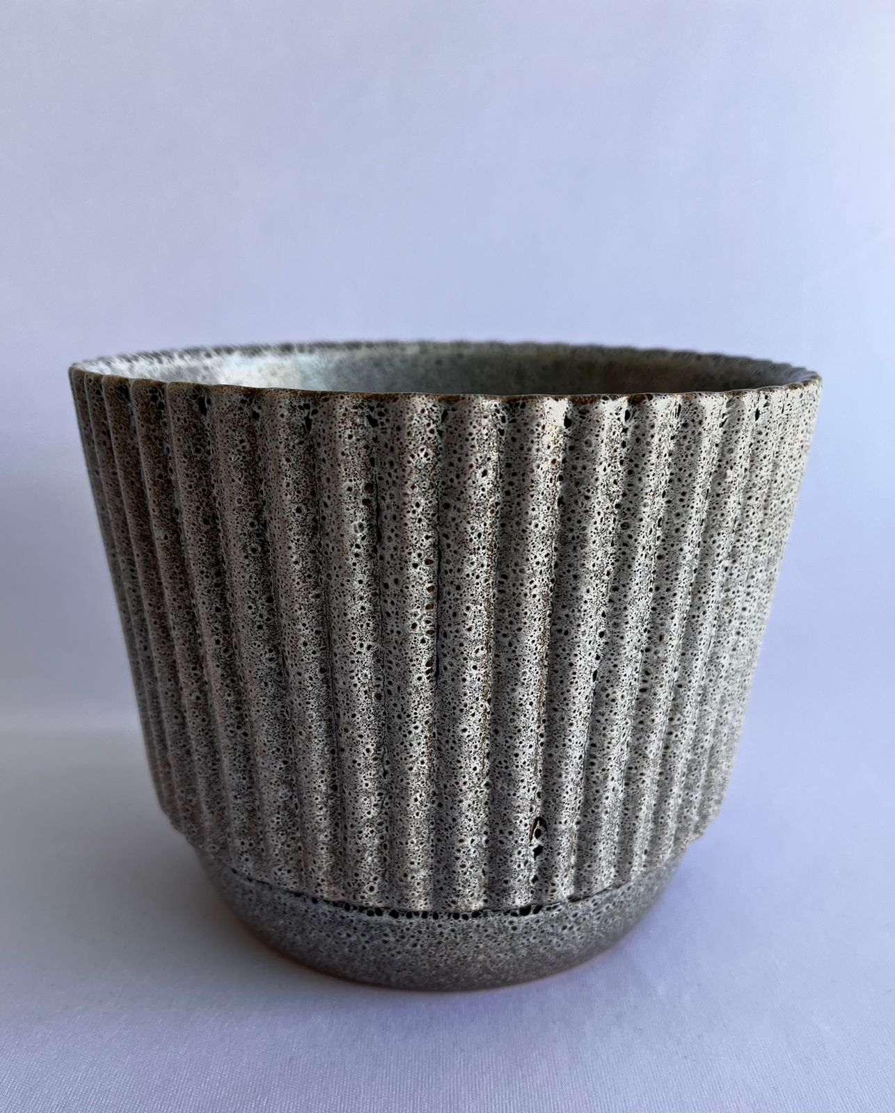 Cachepô de Cerâmica Esmaltada Canelado Quail. Capacidade para vaso padrão pote 15.