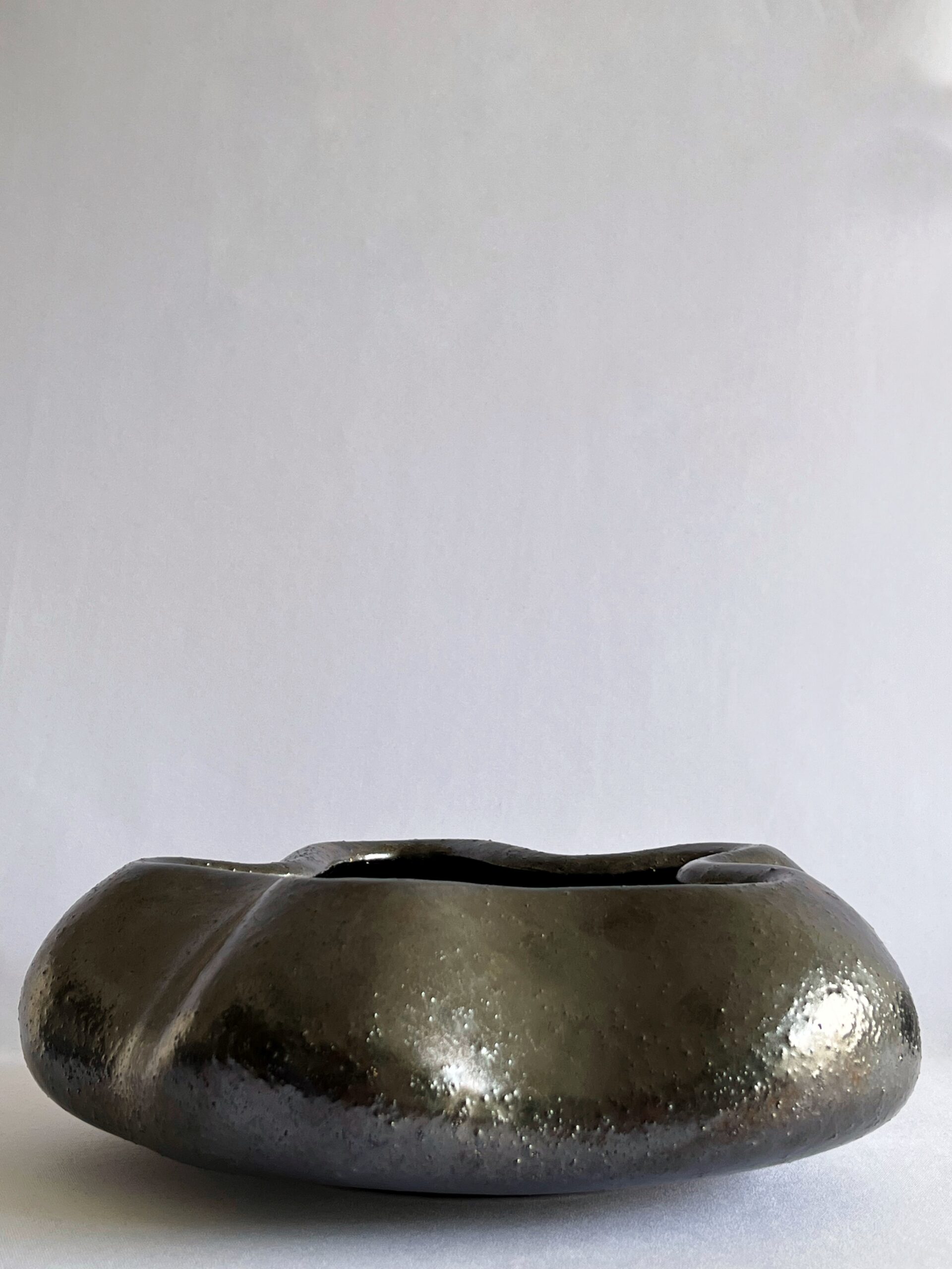 Cachepô de Cerâmica Esmaltada Cuia Dark Metalic. Capacidade para vaso padrão cuia 11