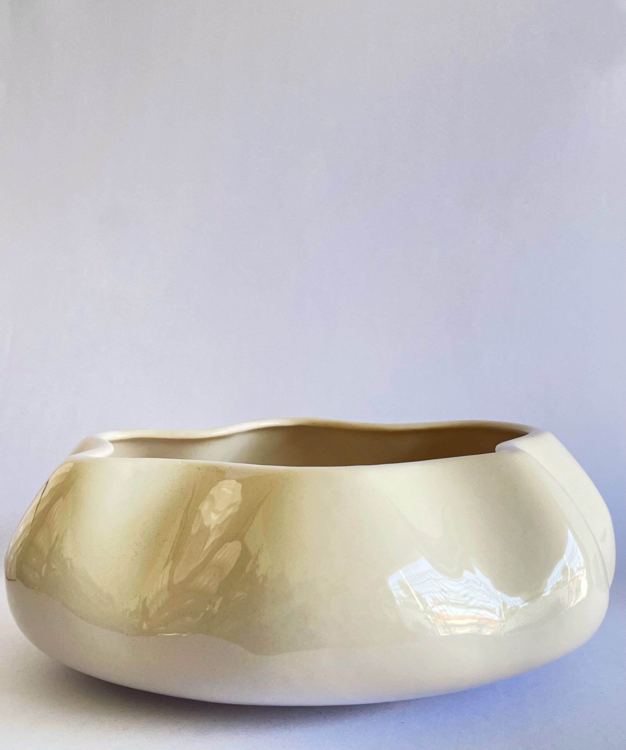 Cachepô de Cerâmica Esmaltada Cuia Off White. Capacidade para vaso padrão cuia 13