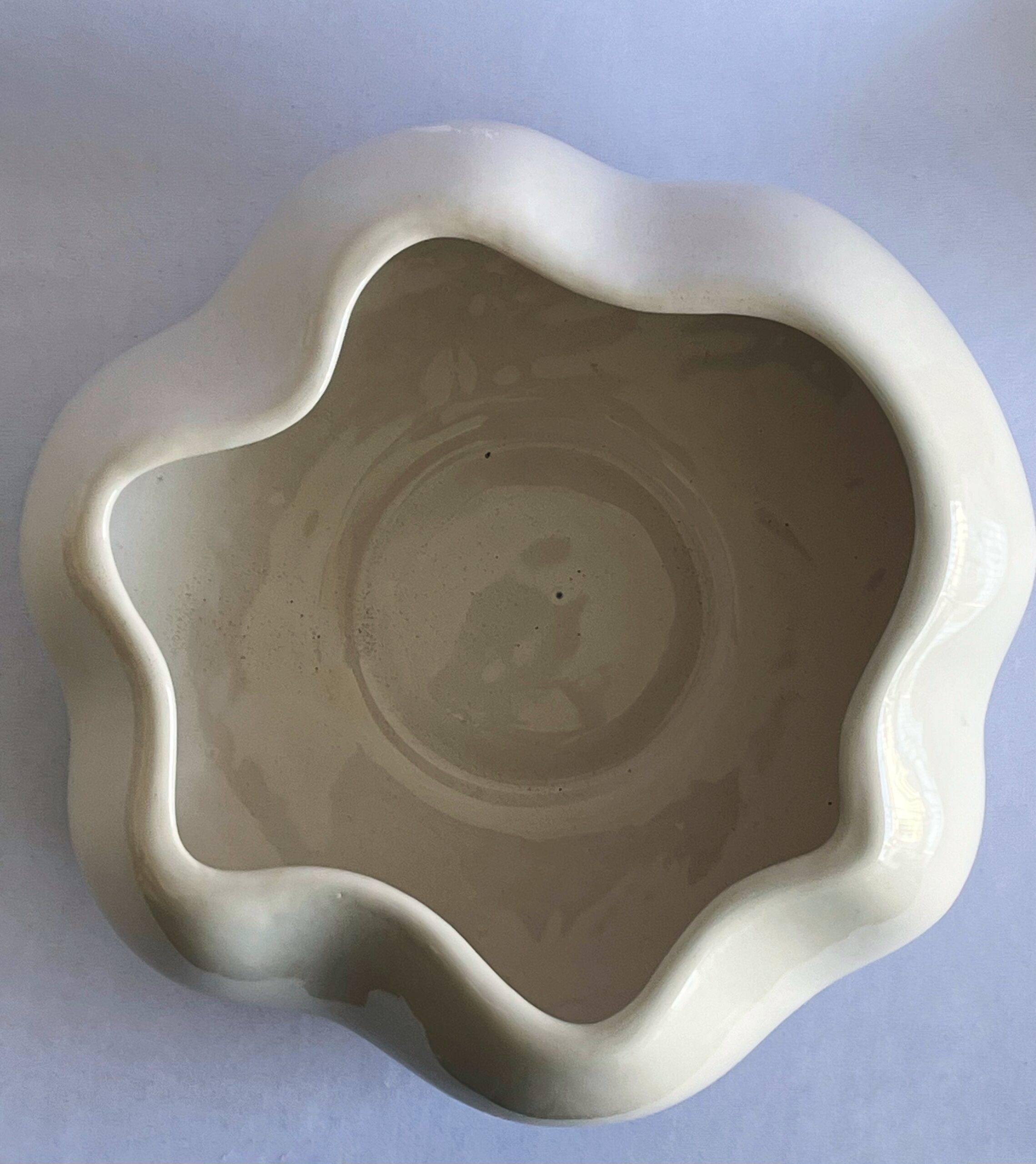 Cachepô de Cerâmica Esmaltada Cuia Off White Waves
