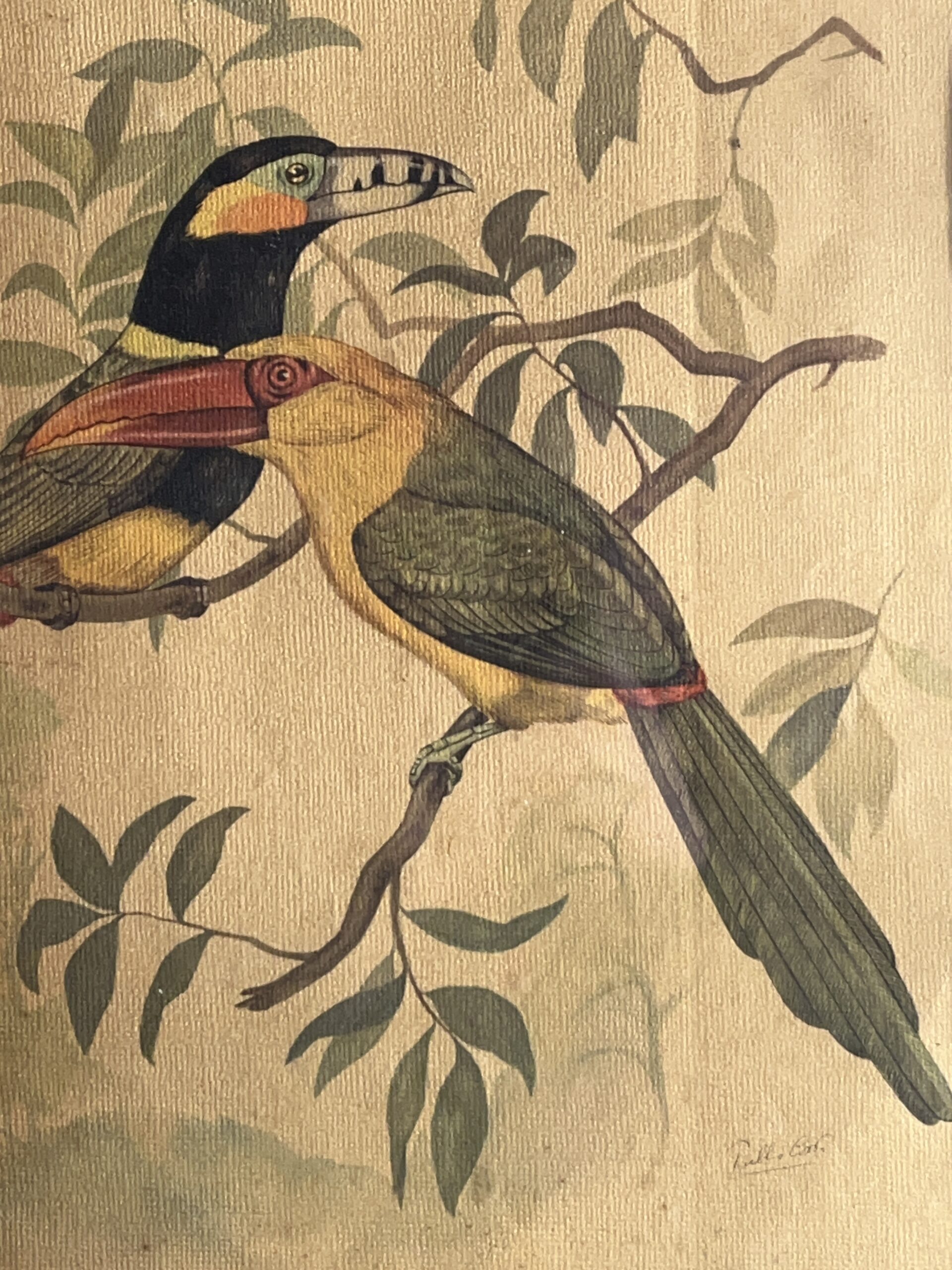 Obra Pássaros – Aquarela sobre cartão, 29,5cm x 39,5cm.